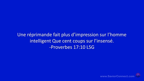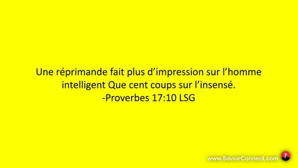 Une réprimande fait plus d'impression sur l'homme intelligent Que cent coups sur l'insensé. -Proverbes 17:10 LSG