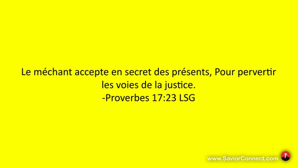 Le méchant accepte en secret des présents, Pour pervertir les voies de la justice. -Proverbes 17:23 LSG