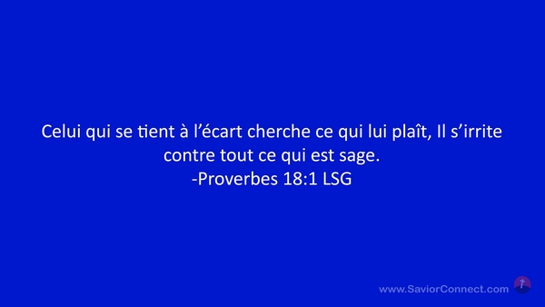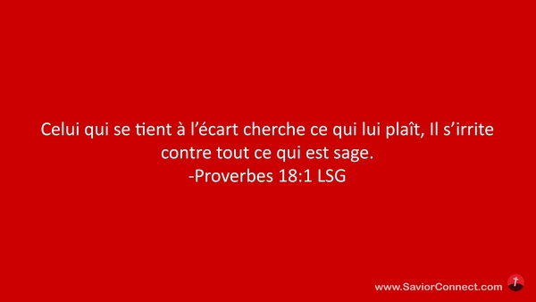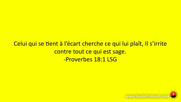 Celui qui se tient à l'écart cherche ce qui lui plaît, Il s'irrite contre tout ce qui est sage. -Proverbes 18:1 LSG