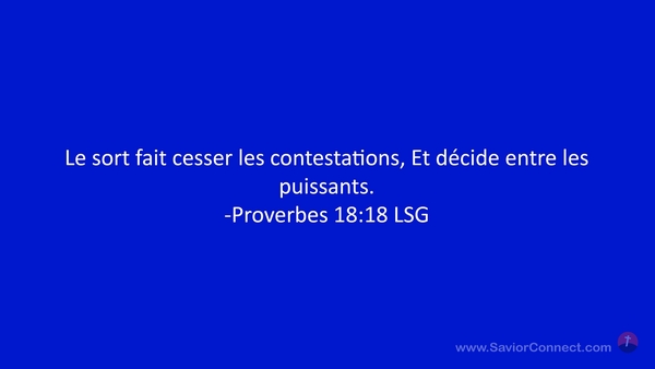 Le sort fait cesser les contestations, Et décide entre les puissants. -Proverbes 18:18 LSG