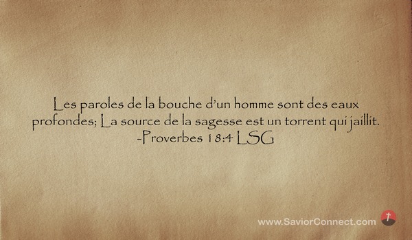 Les paroles de la bouche d'un homme sont des eaux profondes; La source de la sagesse est un torrent qui jaillit. -Proverbes 18:4 LSG