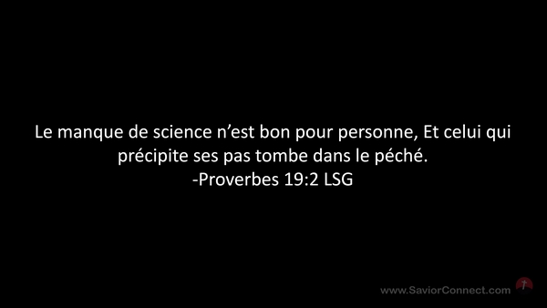 Le manque de science n'est bon pour personne, Et celui qui précipite ses pas tombe dans le péché. -Proverbes 19:2 LSG