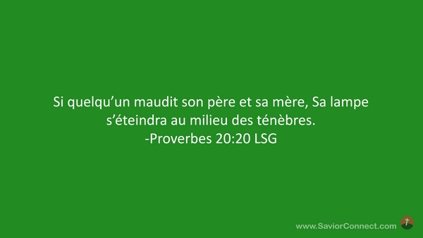 Si quelqu'un maudit son père et sa mère, Sa lampe s'éteindra au milieu des ténèbres. -Proverbes 20:20 LSG