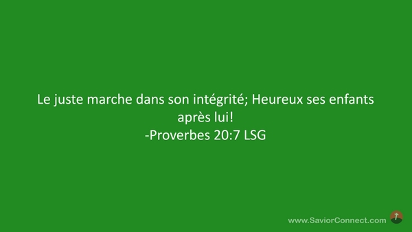 Le juste marche dans son intégrité; Heureux ses enfants après lui! -Proverbes 20:7 LSG