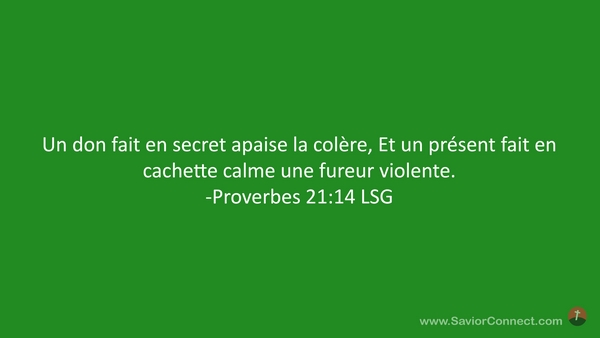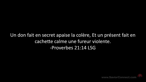 Un don fait en secret apaise la colère, Et un présent fait en cachette calme une fureur violente. -Proverbes 21:14 LSG