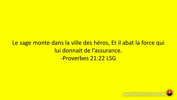 Le sage monte dans la ville des héros, Et il abat la force qui lui donnait de l'assurance. -Proverbes 21:22 LSG
