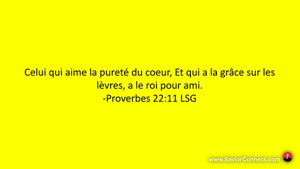 Celui qui aime la pureté du coeur, Et qui a la grâce sur les lèvres, a le roi pour ami. -Proverbes 22:11 LSG