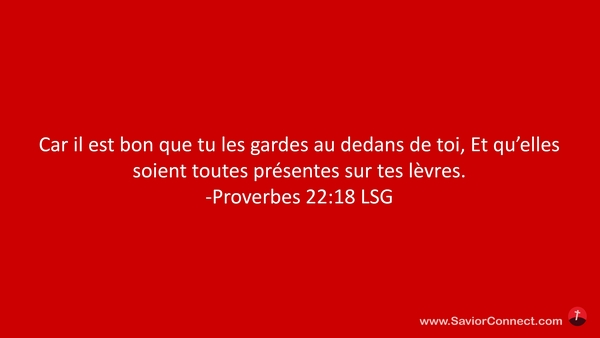 Car il est bon que tu les gardes au dedans de toi, Et qu'elles soient toutes présentes sur tes lèvres. -Proverbes 22:18 LSG