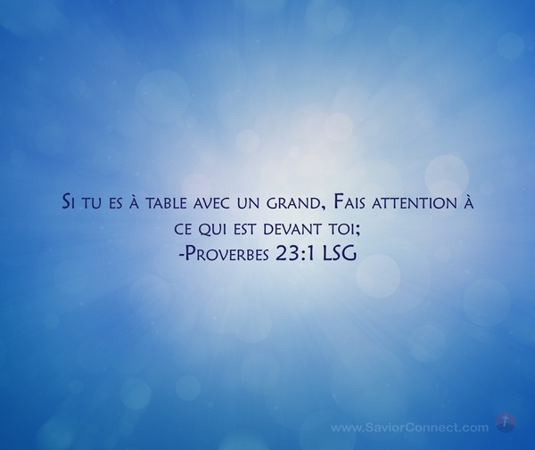 Si tu es à table avec un grand, Fais attention à ce qui est devant toi; -Proverbes 23:1 LSG