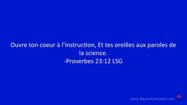 Ouvre ton coeur à l'instruction, Et tes oreilles aux paroles de la science. -Proverbes 23:12 LSG
