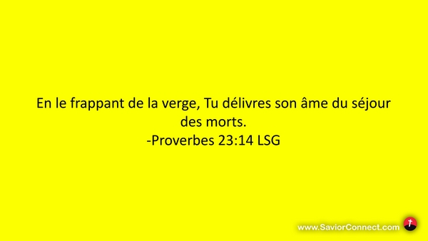 En le frappant de la verge, Tu délivres son âme du séjour des morts. -Proverbes 23:14 LSG