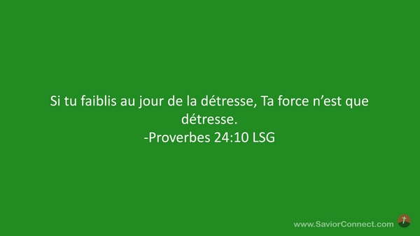 Si tu faiblis au jour de la détresse, Ta force n'est que détresse. -Proverbes 24:10 LSG