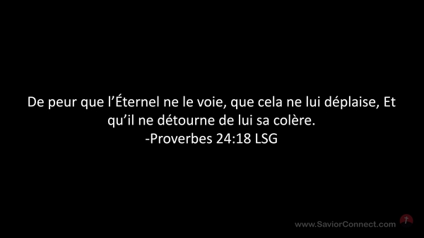 De peur que l'Éternel ne le voie, que cela ne lui déplaise, Et qu'il ne détourne de lui sa colère. -Proverbes 24:18 LSG