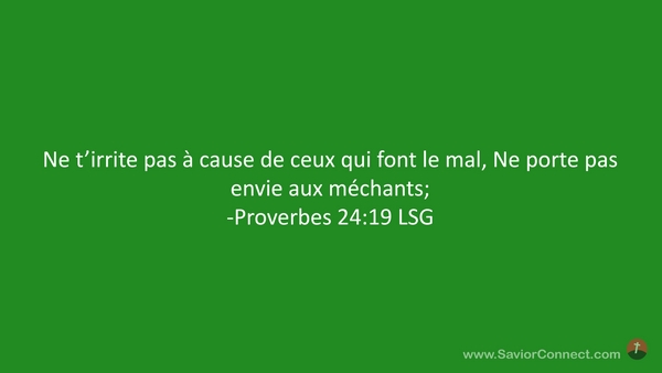 Ne t'irrite pas à cause de ceux qui font le mal, Ne porte pas envie aux méchants; -Proverbes 24:19 LSG