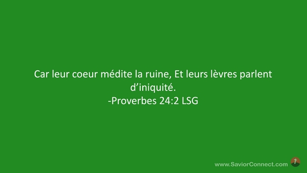 Car leur coeur médite la ruine, Et leurs lèvres parlent d'iniquité. -Proverbes 24:2 LSG