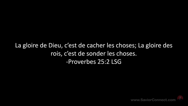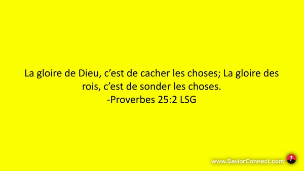 La gloire de Dieu, c'est de cacher les choses; La gloire des rois, c'est de sonder les choses. -Proverbes 25:2 LSG