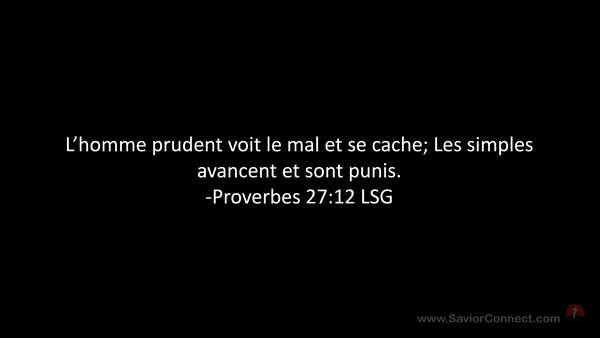 L'homme prudent voit le mal et se cache; Les simples avancent et sont punis. -Proverbes 27:12 LSG