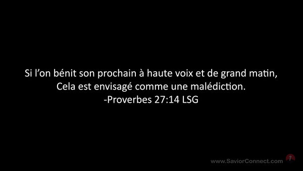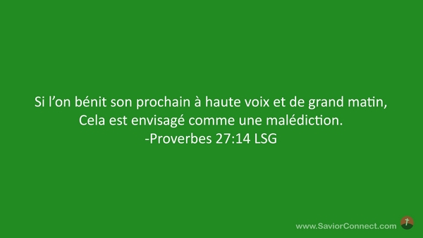 Si l'on bénit son prochain à haute voix et de grand matin, Cela est envisagé comme une malédiction. -Proverbes 27:14 LSG