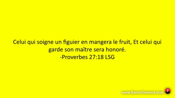 Celui qui soigne un figuier en mangera le fruit, Et celui qui garde son maître sera honoré. -Proverbes 27:18 LSG