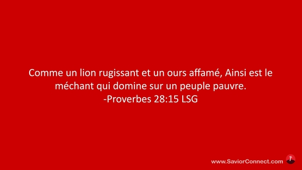 Comme un lion rugissant et un ours affamé, Ainsi est le méchant qui domine sur un peuple pauvre. -Proverbes 28:15 LSG