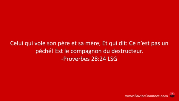 Celui qui vole son père et sa mère, Et qui dit: Ce n'est pas un péché! Est le compagnon du destructeur. -Proverbes 28:24 LSG