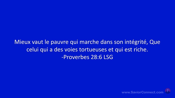 Mieux vaut le pauvre qui marche dans son intégrité, Que celui qui a des voies tortueuses et qui est riche. -Proverbes 28:6 LSG