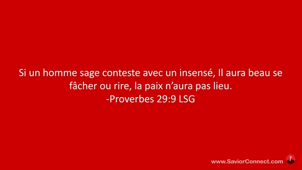 Si un homme sage conteste avec un insensé, Il aura beau se fâcher ou rire, la paix n'aura pas lieu. -Proverbes 29:9 LSG