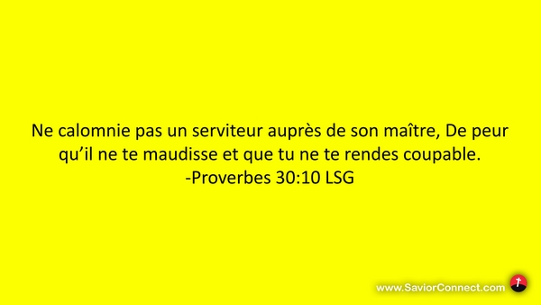 Ne calomnie pas un serviteur auprès de son maître, De peur qu'il ne te maudisse et que tu ne te rendes coupable. -Proverbes 30:10 LSG