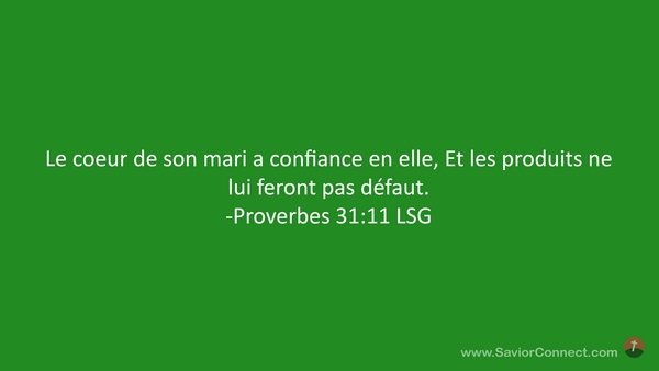 Le coeur de son mari a confiance en elle, Et les produits ne lui feront pas défaut. -Proverbes 31:11 LSG