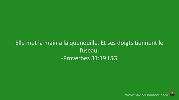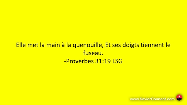 Elle met la main à la quenouille, Et ses doigts tiennent le fuseau. -Proverbes 31:19 LSG