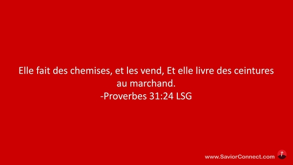 Elle fait des chemises, et les vend, Et elle livre des ceintures au marchand. -Proverbes 31:24 LSG