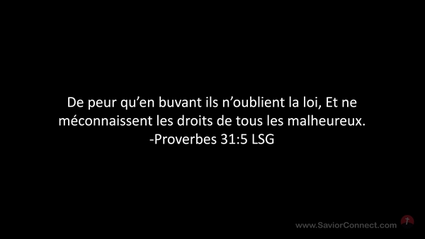 De peur qu'en buvant ils n'oublient la loi, Et ne méconnaissent les droits de tous les malheureux. -Proverbes 31:5 LSG