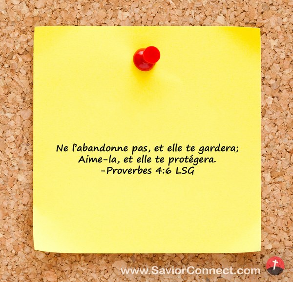 Ne l'abandonne pas, et elle te gardera; Aime-la, et elle te protégera. -Proverbes 4:6 LSG