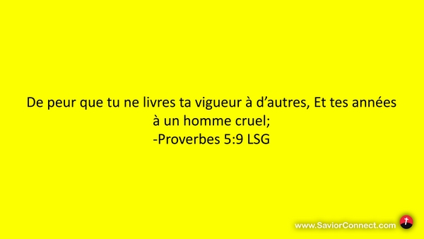 De peur que tu ne livres ta vigueur à d'autres, Et tes années à un homme cruel; -Proverbes 5:9 LSG