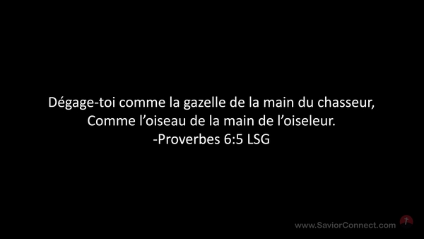 Dégage-toi comme la gazelle de la main du chasseur, Comme l'oiseau de la main de l'oiseleur. -Proverbes 6:5 LSG
