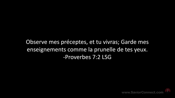 Observe mes préceptes, et tu vivras; Garde mes enseignements comme la prunelle de tes yeux. -Proverbes 7:2 LSG