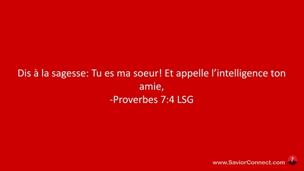 Dis à la sagesse: Tu es ma soeur! Et appelle l'intelligence ton amie, -Proverbes 7:4 LSG
