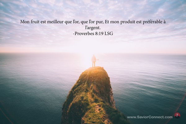 Mon fruit est meilleur que l'or, que l'or pur, Et mon produit est préférable à l'argent. -Proverbes 8:19 LSG
