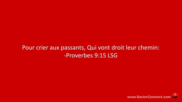 Pour crier aux passants, Qui vont droit leur chemin: -Proverbes 9:15 LSG