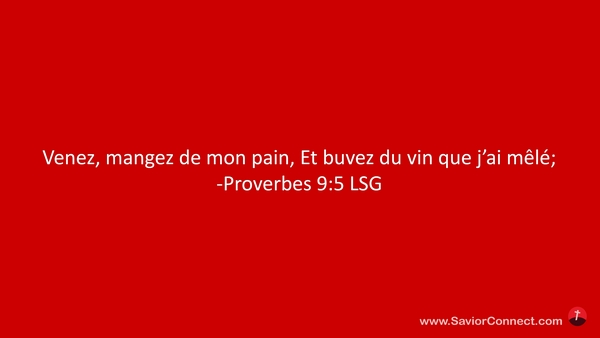 Venez, mangez de mon pain, Et buvez du vin que j'ai mêlé; -Proverbes 9:5 LSG