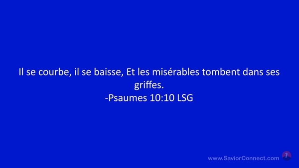 Il se courbe, il se baisse, Et les misérables tombent dans ses griffes. -Psaumes 10:10 LSG