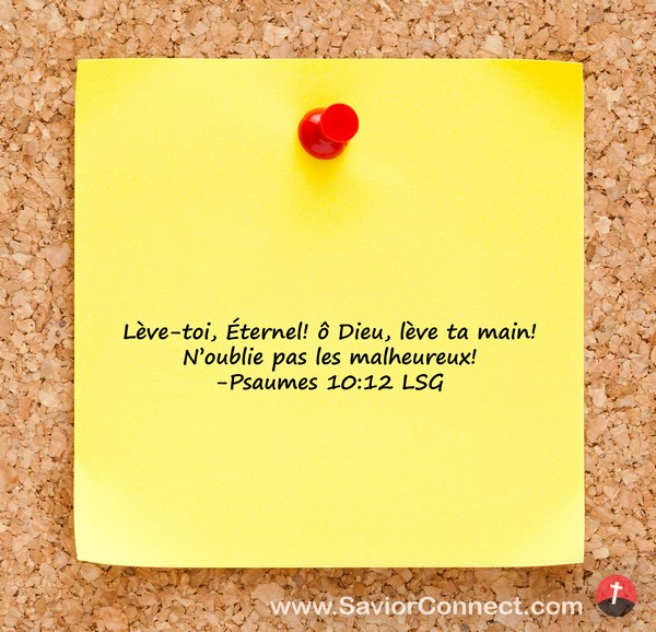 Lève-toi, Éternel! ô Dieu, lève ta main! N'oublie pas les malheureux! -Psaumes 10:12 LSG