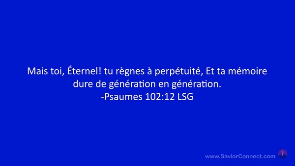 Mais toi, Éternel! tu règnes à perpétuité, Et ta mémoire dure de génération en génération. -Psaumes 102:12 LSG