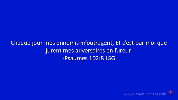Chaque jour mes ennemis m'outragent, Et c'est par moi que jurent mes adversaires en fureur. -Psaumes 102:8 LSG