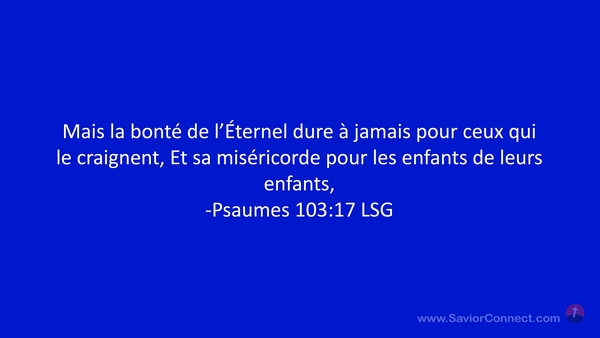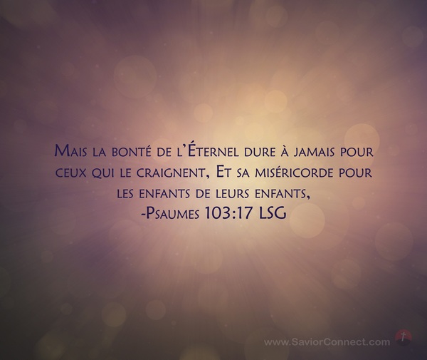 Mais la bonté de l'Éternel dure à jamais pour ceux qui le craignent, Et sa miséricorde pour les enfants de leurs enfants, -Psaumes 103:17 LSG