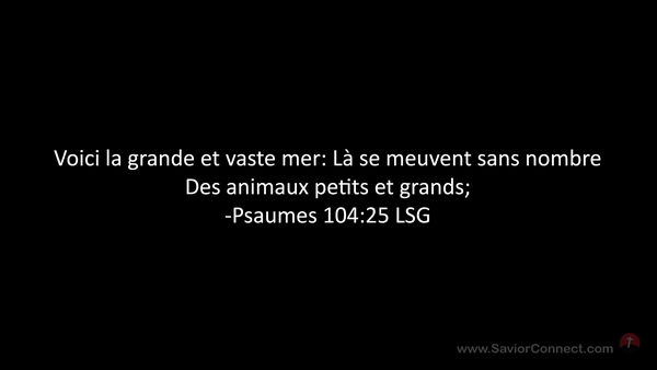 Voici la grande et vaste mer: Là se meuvent sans nombre Des animaux petits et grands; -Psaumes 104:25 LSG