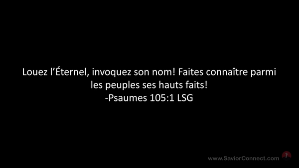 Louez l'Éternel, invoquez son nom! Faites connaître parmi les peuples ses hauts faits! -Psaumes 105:1 LSG