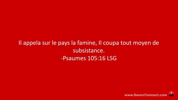 Il appela sur le pays la famine, Il coupa tout moyen de subsistance. -Psaumes 105:16 LSG