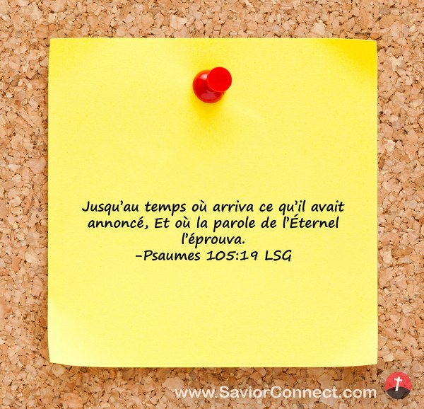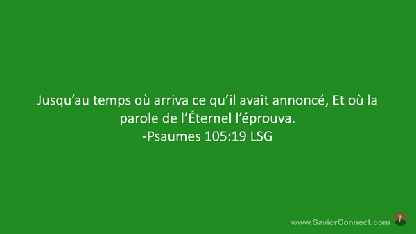 Jusqu'au temps où arriva ce qu'il avait annoncé, Et où la parole de l'Éternel l'éprouva. -Psaumes 105:19 LSG