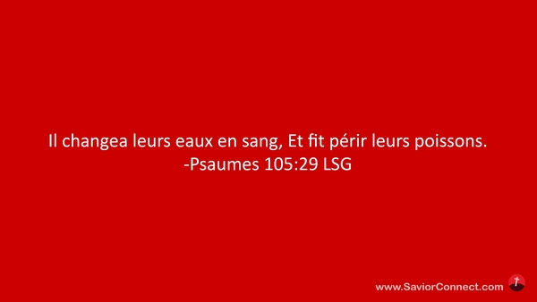 Il changea leurs eaux en sang, Et fit périr leurs poissons. -Psaumes 105:29 LSG